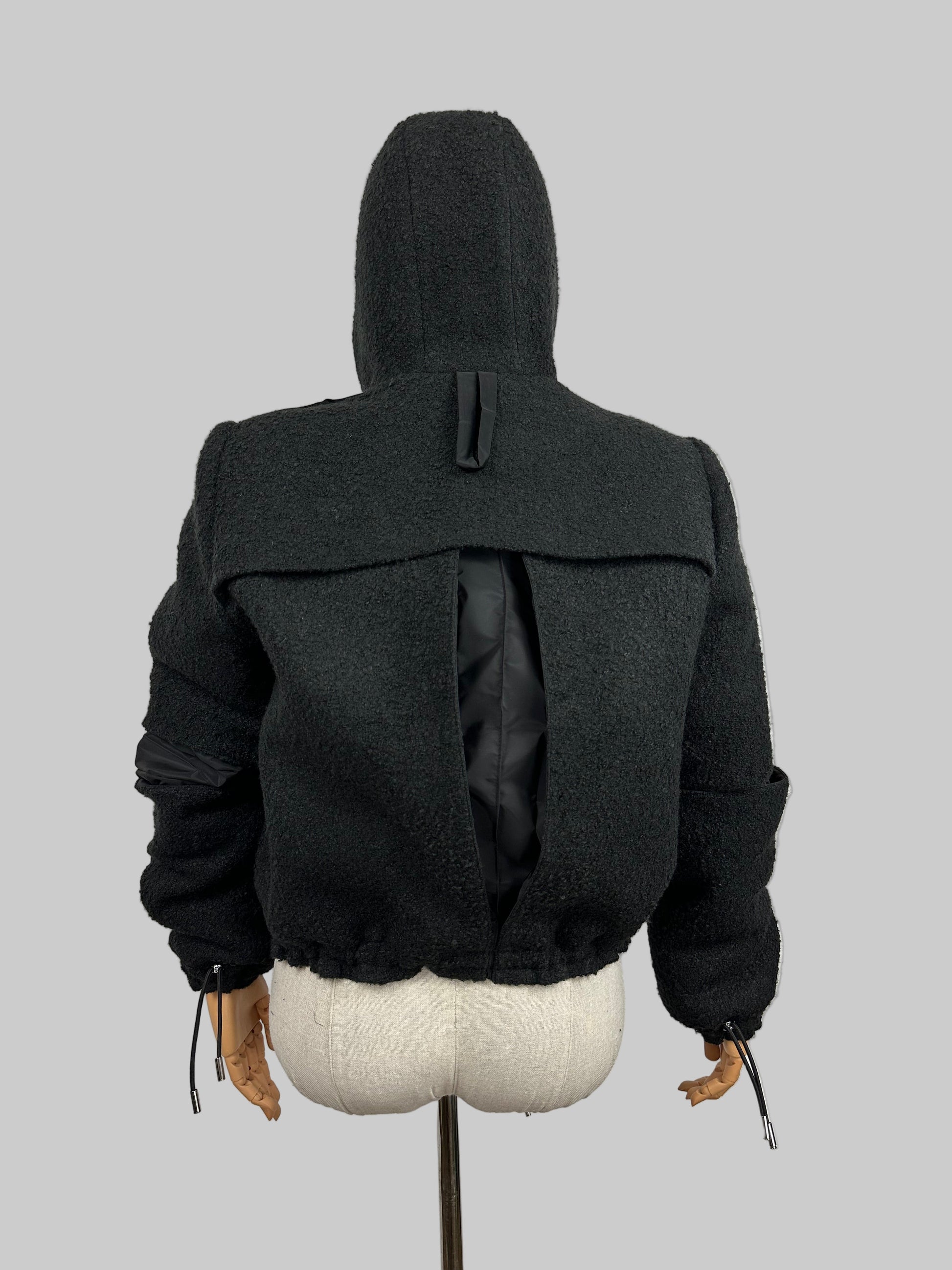 Bomber Noris Premium - Lana Bouclé Nero con Cappuccio